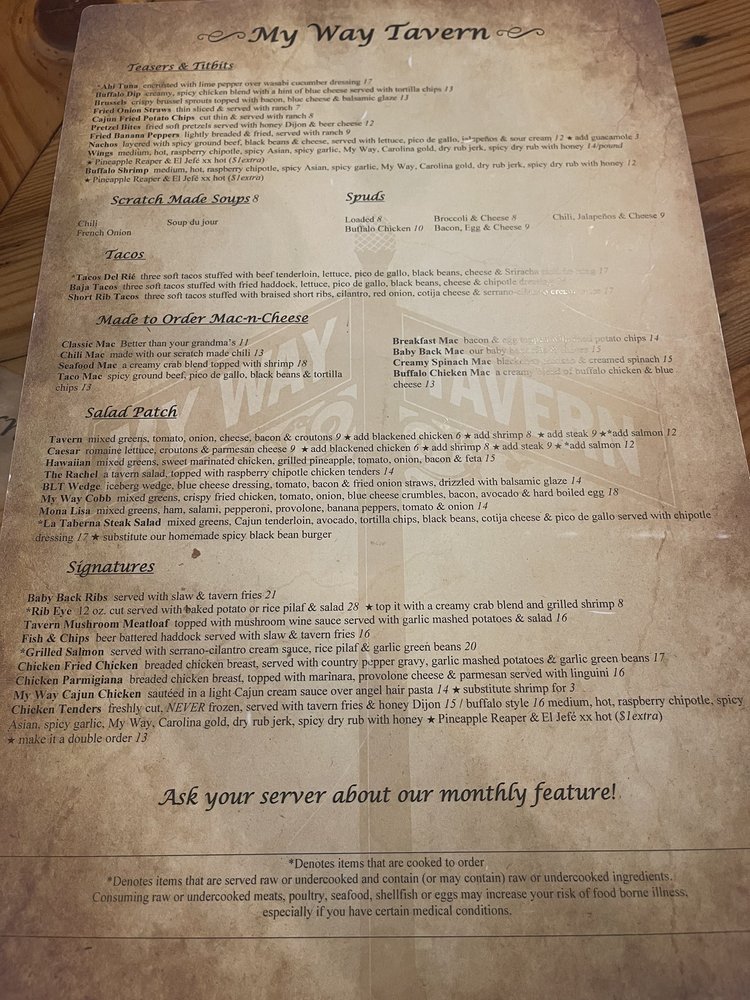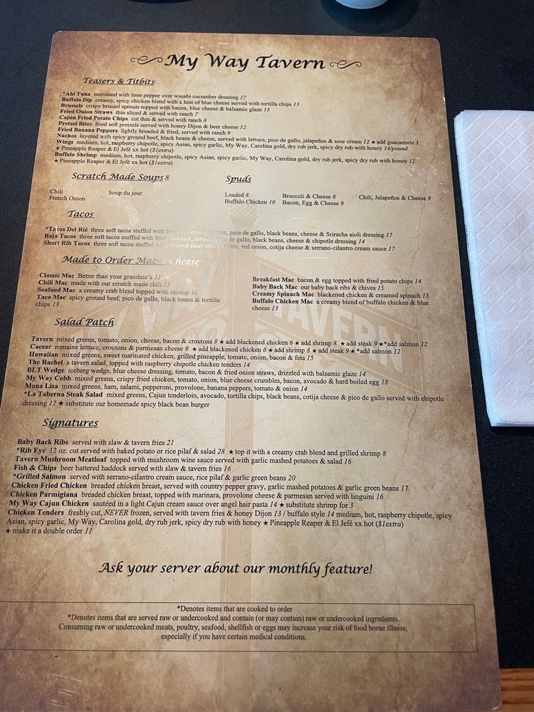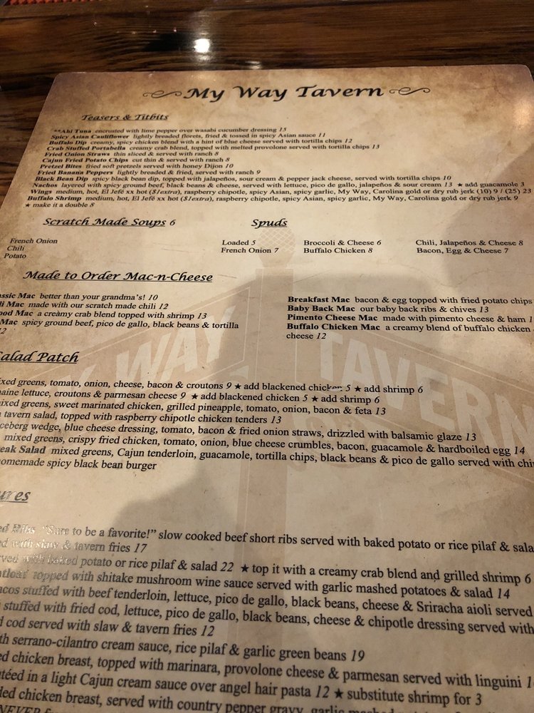 My Way Tavern, located in Raleigh, NC, is a vibrant New American restaurant and bar with a plethora of amenities. This establishment offers delivery and takeout options, takes reservations, and provides a range of vegetarian dishes. They accept credit cards and Apple Pay, and have outdoor seating available. The atmosphere is casual and lively, making it suitable for groups, kids, and lunch outings. With street and private lot parking, waiter service, and free Wi-Fi, My Way Tavern ensures a seamless dining experience. The full bar, TVs, pool table, and bike parking add to the entertainment factor. The best nights to visit are Saturdays, ideal for those who enjoy dancing and socializing. Overall, My Way Tavern is a must-visit spot for those looking for a fun and delicious dining experience in Raleigh.